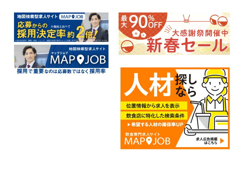 ウェブに掲載するバナー3つ
